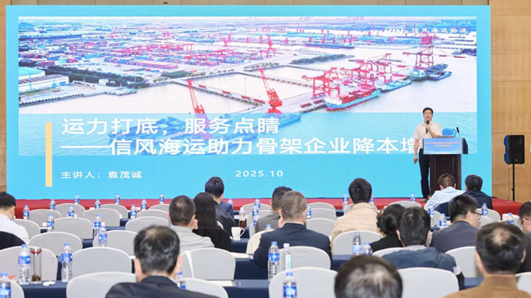 信风海运长江片区袁茂诚在大会上做了精彩的公司推介。发言围绕“运力打底,服务点睛”的主题,结合目前骨架行业装卸效率低、运输成本高、时效不稳定三大难题,详细介绍了公司在橡胶骨架材料运输领域的专业优势和服务特色。重点展示了公司在船舶运力配置、航线网络布局、全链条运输方案等方面的核心竞争力,以及近年来为多家知名合作企业提供的定制化物流解决方案。