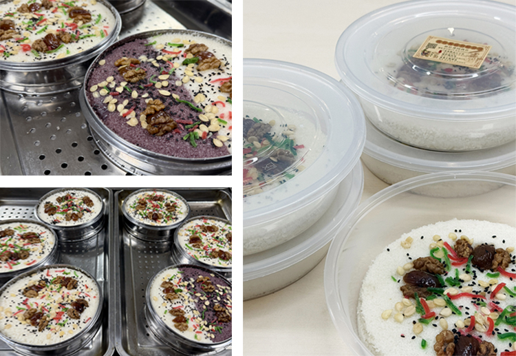 经过两个小时的精心制作,香气四溢的重阳糕新鲜出炉。晾凉之后将糕点分装好,带回办公室给所有小伙伴们分享品尝。